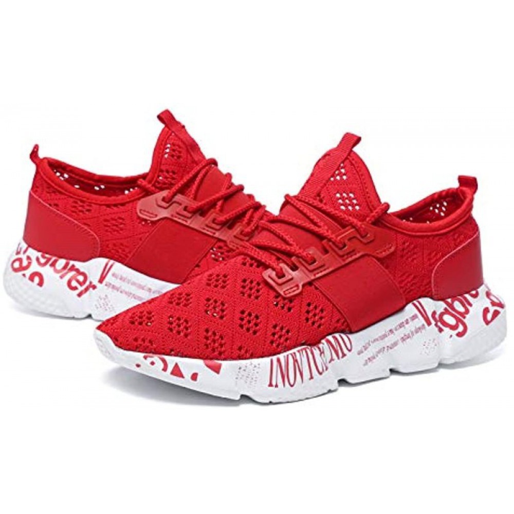 Men's Lightweight Breathable Mesh Street Sport Walking Shoes Casual Sneakers for Sports Gym Walking Red