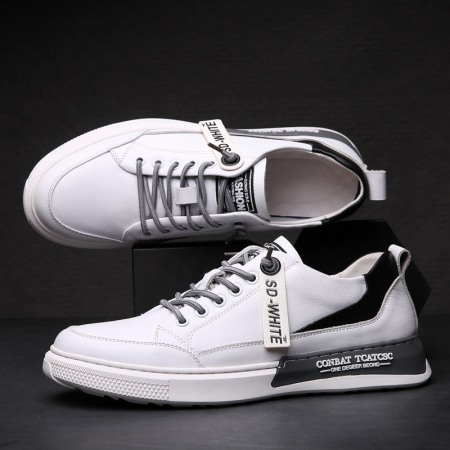 Sports Shoes Men's Spring New Trendy Shoes Leather Casual Style Men's Shoes White