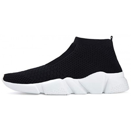 Men's Running Shoes Breathable Knit Slip On Sneakers Lightweight Athletic Shoes Casual Sports Shoes High Top White