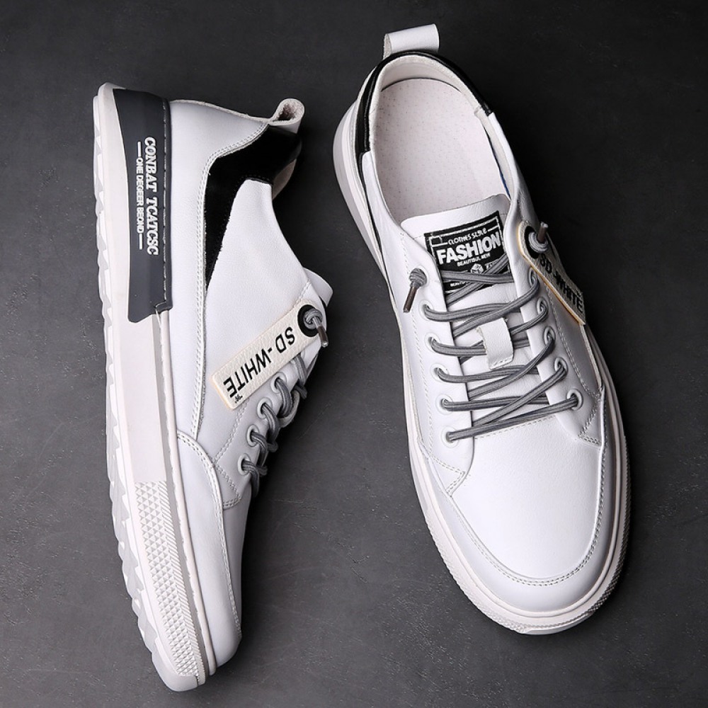Sports Shoes Men's Spring New Trendy Shoes Leather Casual Style Men's Shoes White