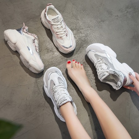 Sports Style Women's Spring New Trendy Mesh Breathable Thick-Soled Increased Sports Casual Shoes Women